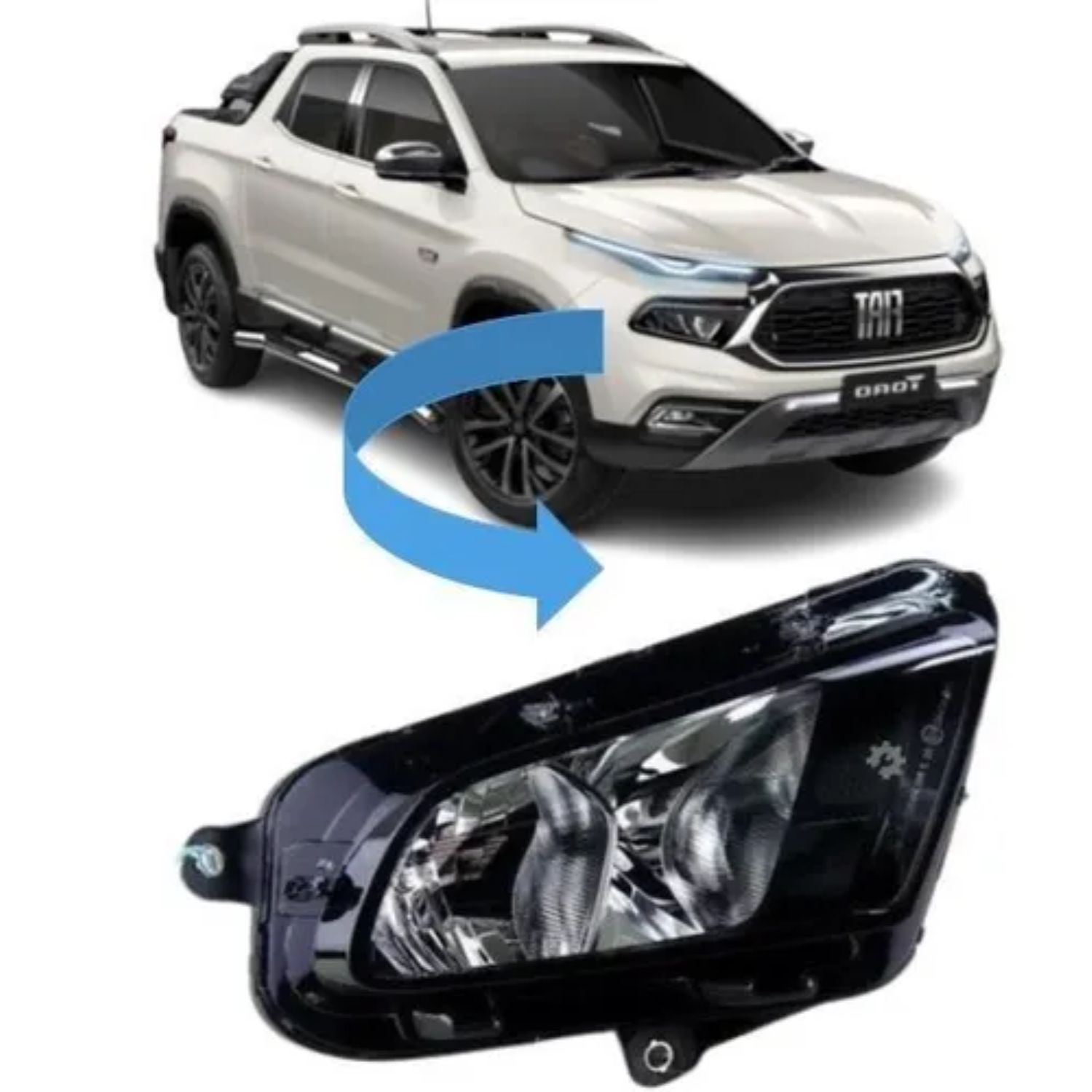 Farol dianteiro lado direito original para Fiat Toro, indicado para reposição do conjunto óptico frontal e responsável pela iluminação correta da via, garantindo segurança e visibilidade durante a condução.