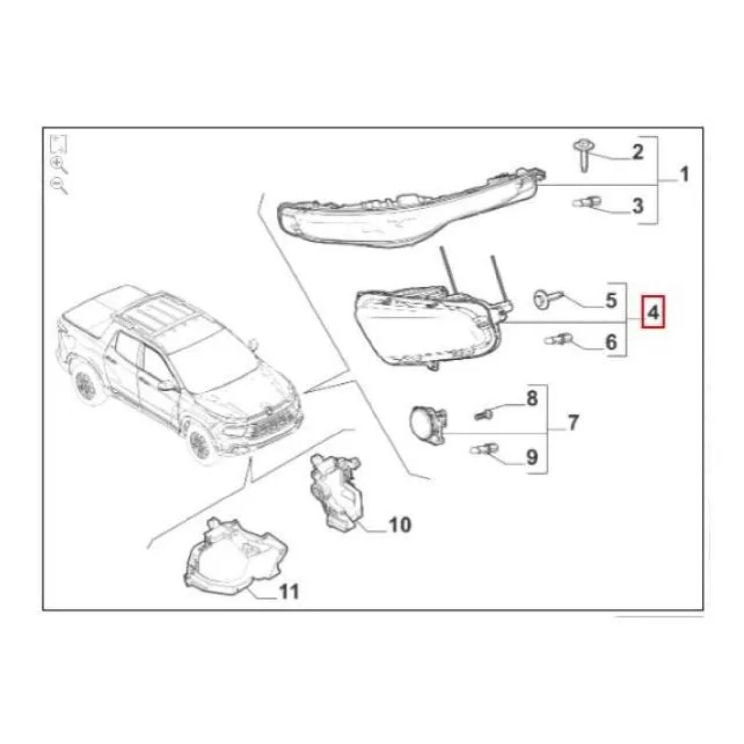 Farol dianteiro lado direito original Fiat, código 100252651, desenvolvido para reposição do farol de fábrica da Fiat Toro. O produto garante iluminação eficiente em condições noturnas ou de baixa visibilidade, mantendo o padrão original de encaixe, fixação e conexão elétrica do veículo. Fabricado com materiais de alta qualidade, oferece durabilidade, resistência e funcionamento adequado, preservando as características originais do sistema de iluminação e o visual do veículo.